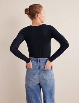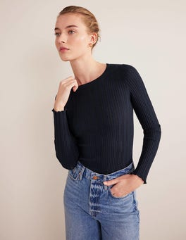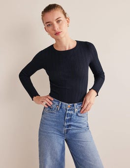 Layer this soft stretch-cotton long-sleeve top under knitwear, sweatshirts, and dresses. It's finished with a rolled hem and cuffs.