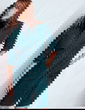 Ros Panelled Cord Short Dress-Navy