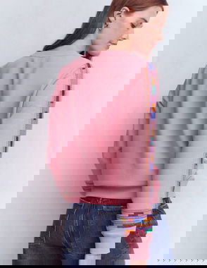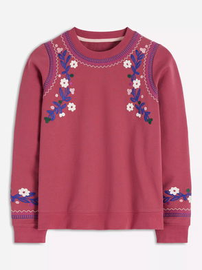 Throw on a sweater but why not make it fun? They’ve elevated this easy cotton sweatshirt with some playful embroidery and, of course, splashes of bright colour.