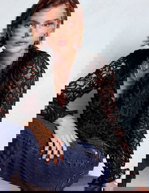 Ruffle Detail Lace Blouse-Ivory