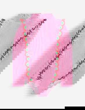 Show the sun who's boss with this ruffled long-sleeved swimsuit. It's available in two prints (both of which are designed-in-house) and has a coverage-enhancing high neckline and easy-peasy zip. Both designs are completed with neon pom-braid trims around the waistline (after all, who said the seaside wasn't for dressing up?)