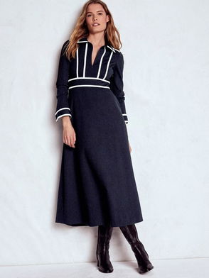 Introducing our upgrade on the retro-style shift dress. This piece is super-flattering and gently nipped in for a feminine finish. A contrast trim defines the crew neck, armholes and slanted pockets and is picked up on the tie waistband. Crafted from substantial ponte, it holds its shape (while complementing yours) and has a touch of stretch for comfort.