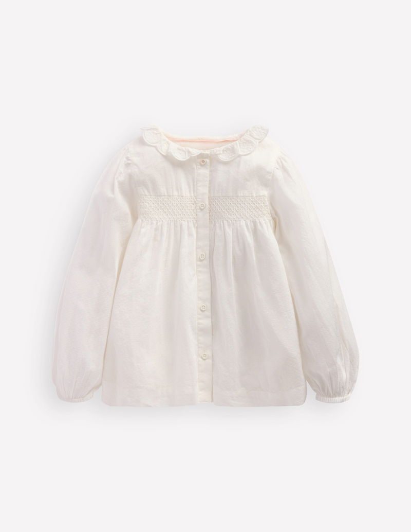 Scalloped Collar Smocked Shirt-Soft Ivory