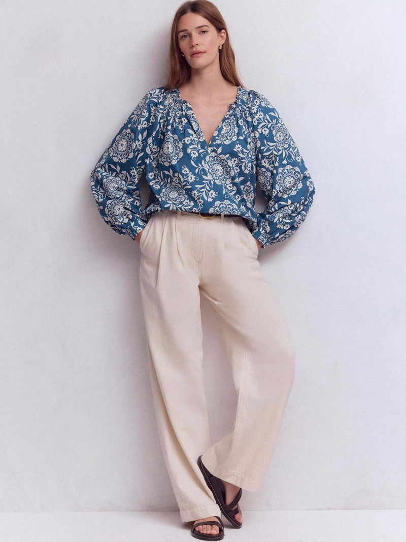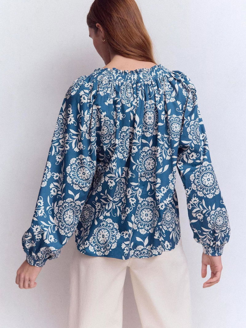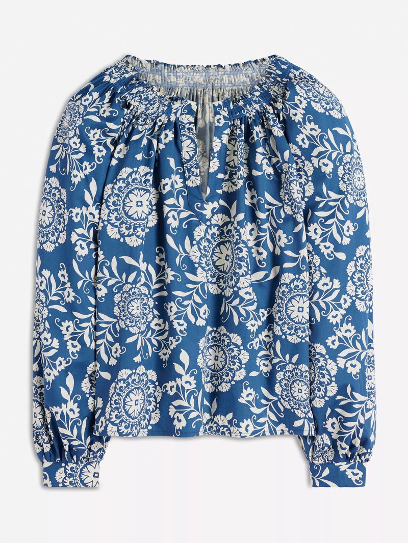 Serena Floral Smocked Cuff Top, Dark Blue/Multi