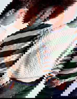Multicoloured sharks feel right at home on this lightweight cotton-blend jumper. A touch of merino keeps it supersoft, and the ribbed cuffs and neckline ensure it stays cosy.