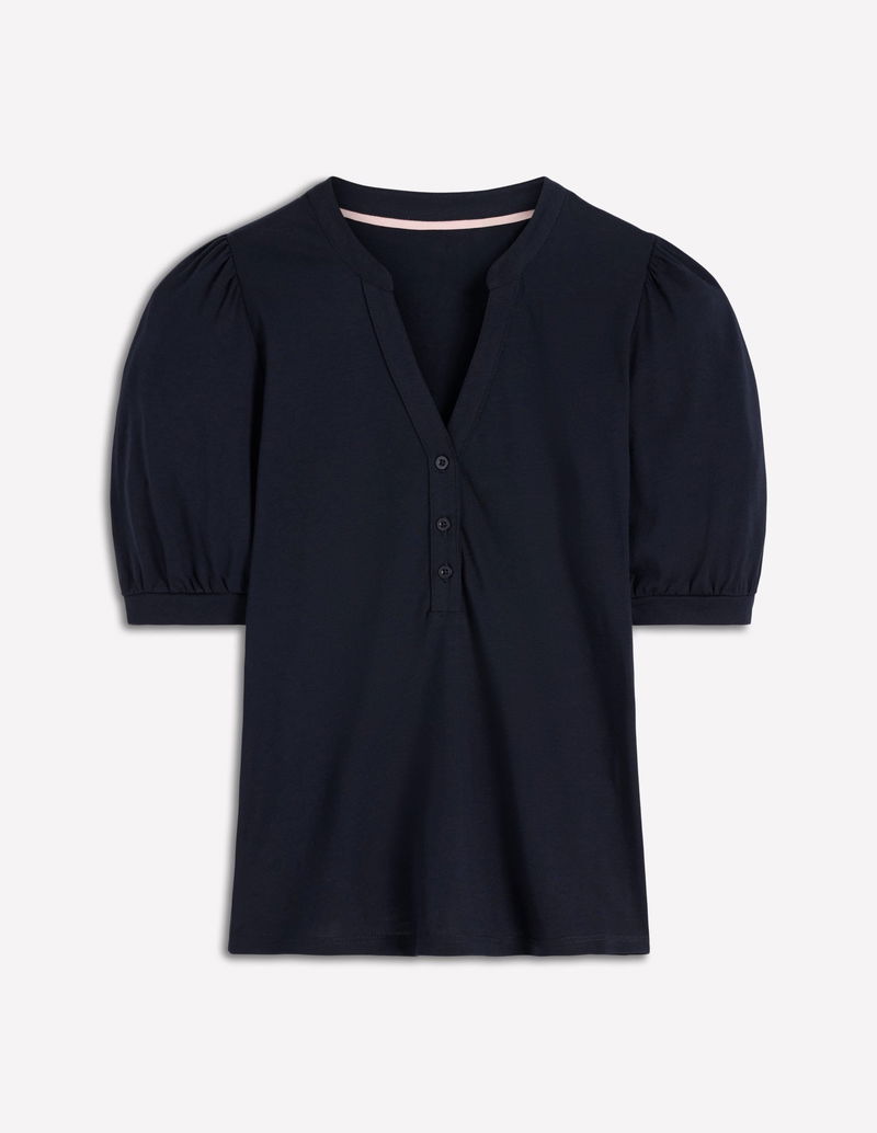 Short Sleeve Open Neck Henley-Navy