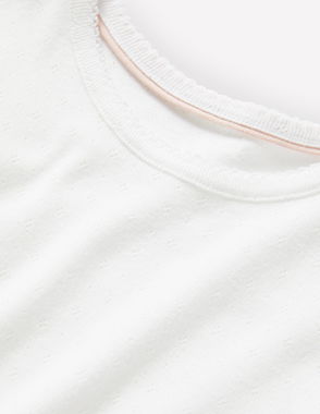 We always want our basics to go the extra mile. So, not only is this top spun from super-soft cotton; we’ve made it even better by adding puff sleeves and a delicate scalloped trim.