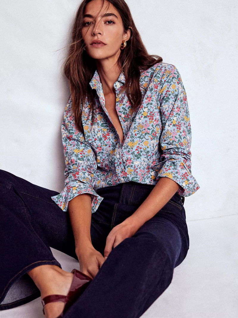 A simple shirt from Boden, crafted from soft cotton. Featuring a collar and long sleeves, it will instantly lift your mood with its bloom-filled floral print. Everyday ease with a stylish twist.