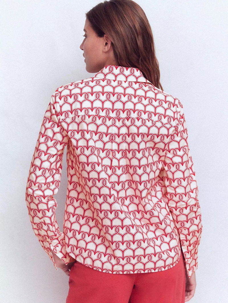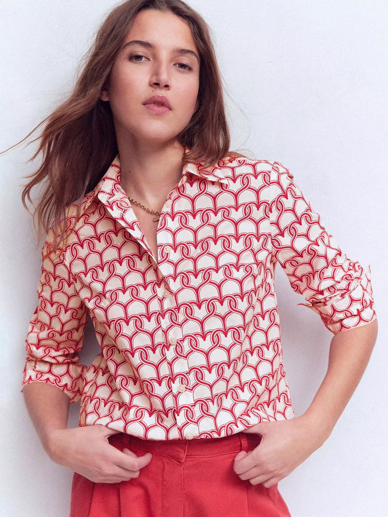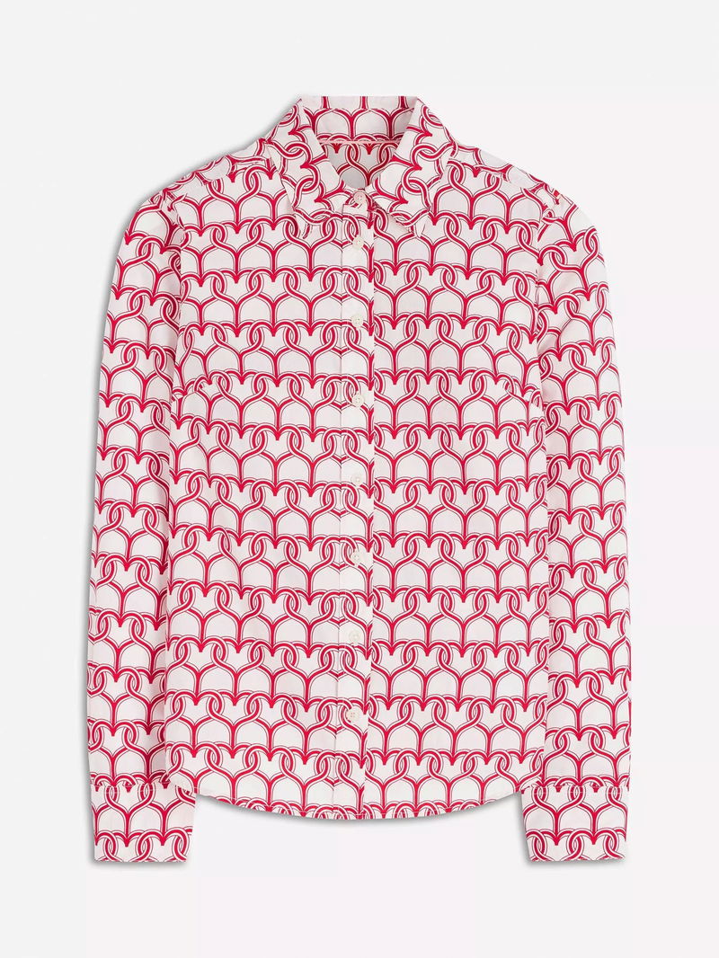 Sienna Heart Print Shirt, Ivory/Red