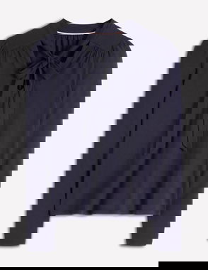 Smocked cuffs give this easy long-sleeve top a point of difference. Show it off layered under a knitted tank or wear on its own tucked into high-rise jeans.