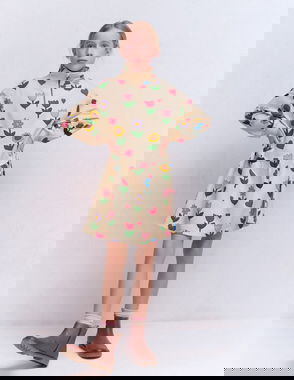 Supersoft and floaty, this vibrant dress is sunny-day perfect. It has a strappy, gathered top and a generous skirt for a light and airy feel. There are two colour-popping options to choose from – take a dive in the ocean with an underwater reef print or opt for appliqué daisies on rainbow stripes.