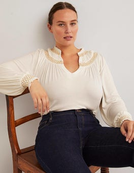 Metallic details. Notch neck. Blouson sleeves. What more could you want from a top?