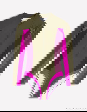 This raglan swimsuit has a handy zip, removable padded cups and long sleeves – perfect for extra coverage when you’re out in the sun all day (lucky thing).