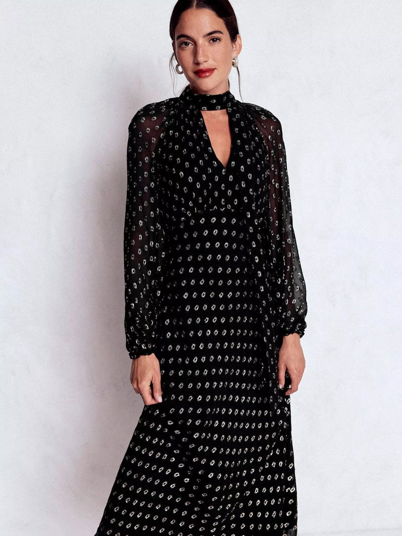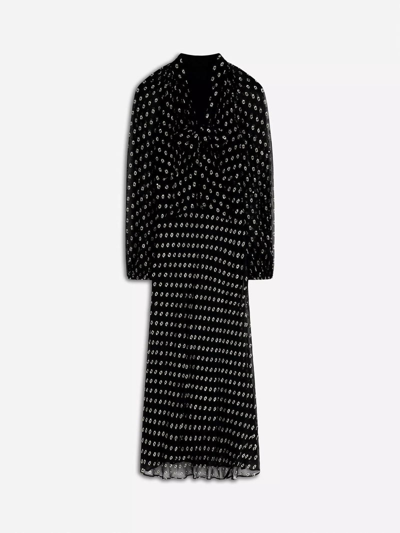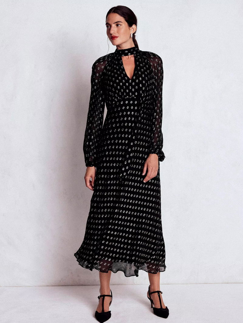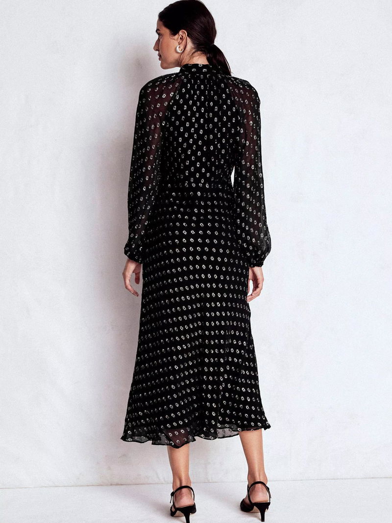 Spot Tie Neck Midi Dress