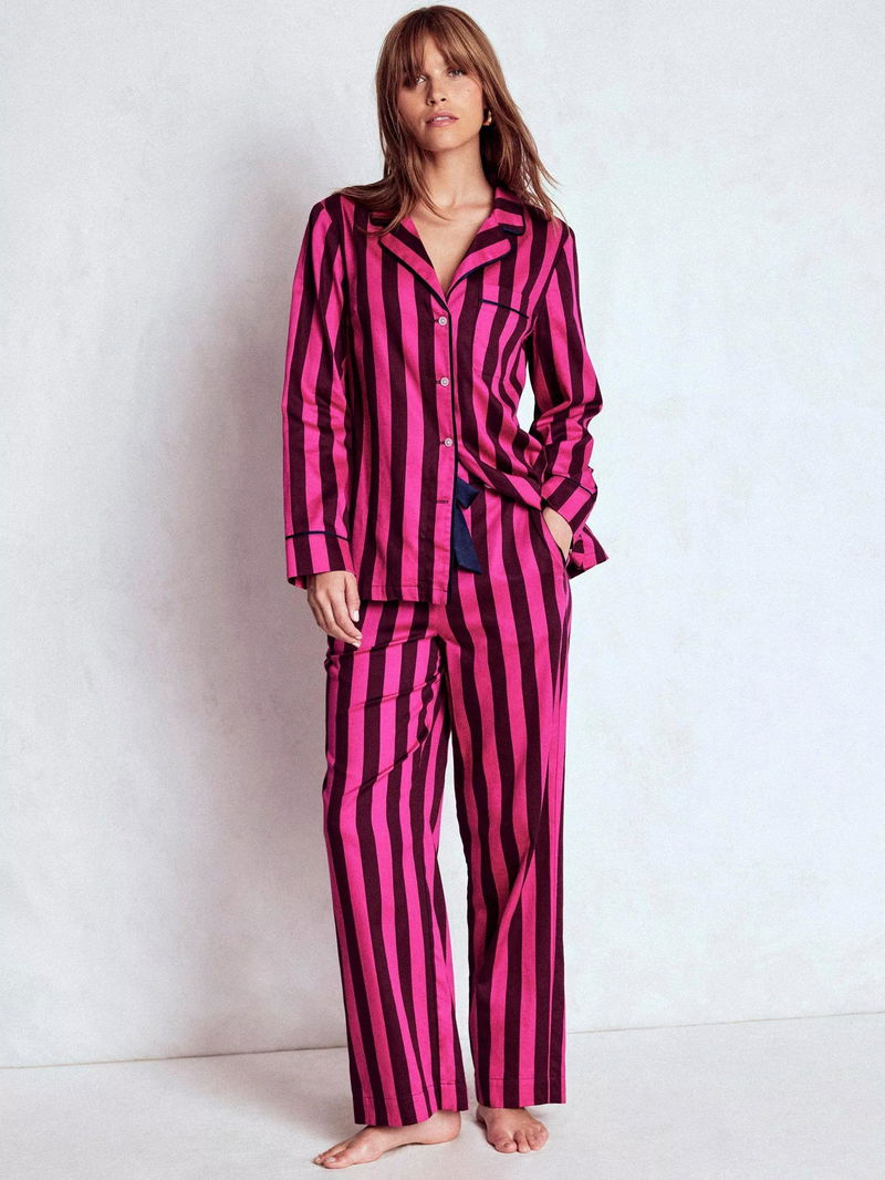 After a chaotic day, pull on these 100% cotton pyjama trousers and exhale. Not only will you look stylish (satin bow tie, pocket piping and gorgeous prints), but you'll feel cocooned in cosy comfort too.