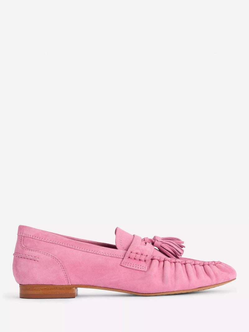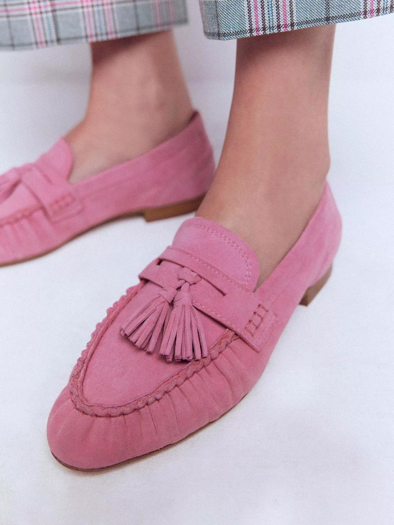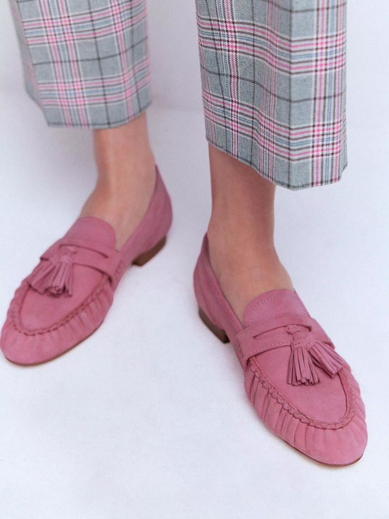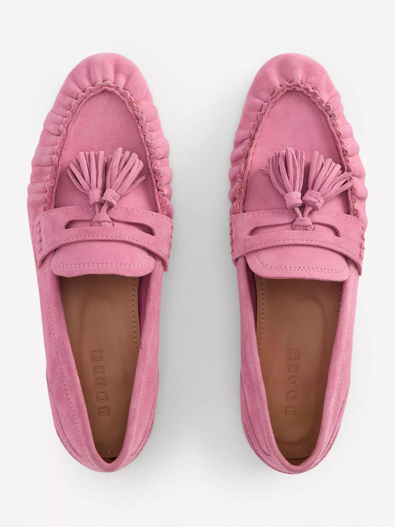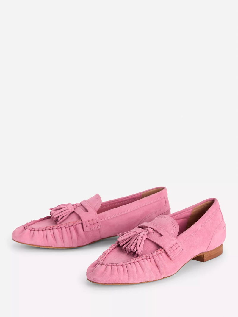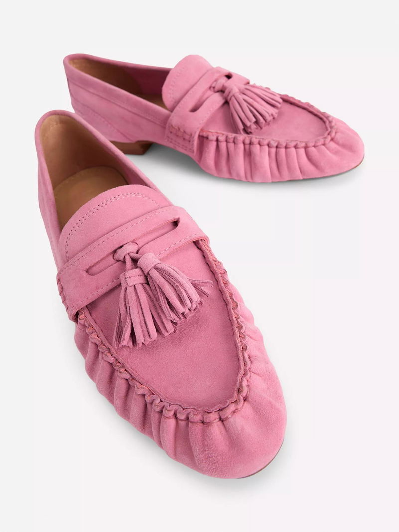 Suede Soft Ruched Loafers, Pink Parfait