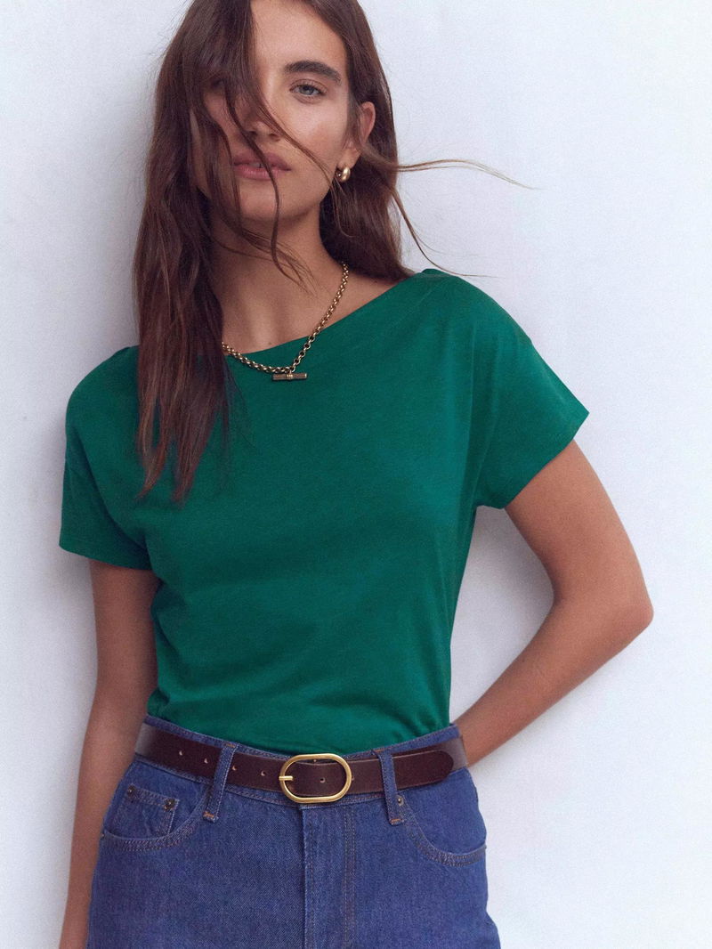 How to hit refresh on an everyday basic? Boden have played with shape when crafting this soft cotton-blend tee. It's cut for a slim fit with a boat neck and shorter sleeves. You'll love the bright colour, too.