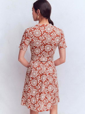 Though it's an easy-to-wear wonder for everyday dressing, this midi dress isn't short on impact. Its shape is feminine, with a deep V-neck, smart buttons down the front and airy sleeves that cinch in at the wrist. Gathers at the waistband define and flatter your figure as well as creating breezy fullness in the skirt. As it's crafted from supersoft fabric with a textured finish, this style feels comfortable, and the in-house designed print makes it eye-catching, too.