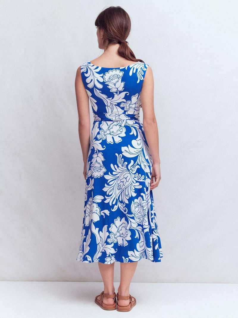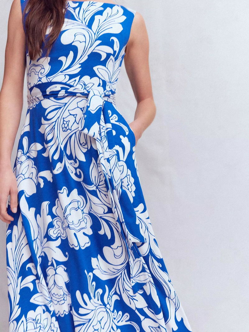 Tamsin Floral Jersey Midi Dress, Bright Blue