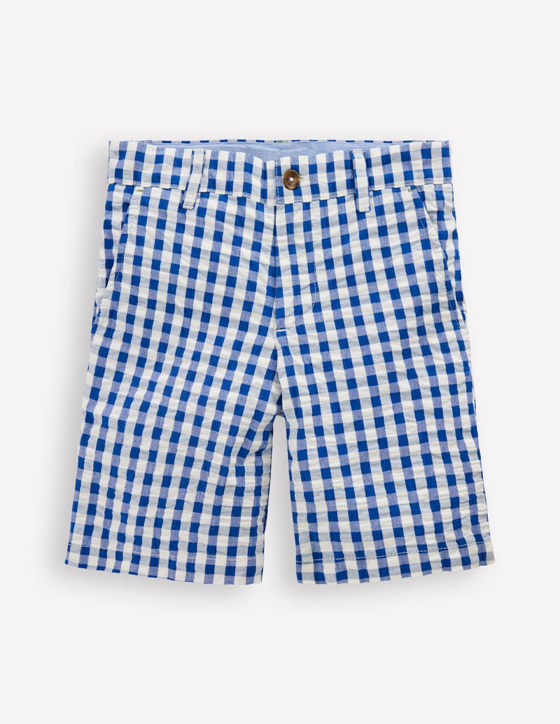 Textured Shorts-Blue Gingham