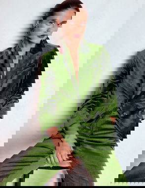 Cut from a weightier wool and cotton-blend fabric, this fully-lined blazer feels substantial when layered over a popling shirt or tee. The relaxed silhouette features a two-button fastening, flat front poackets, and peak lapels.more