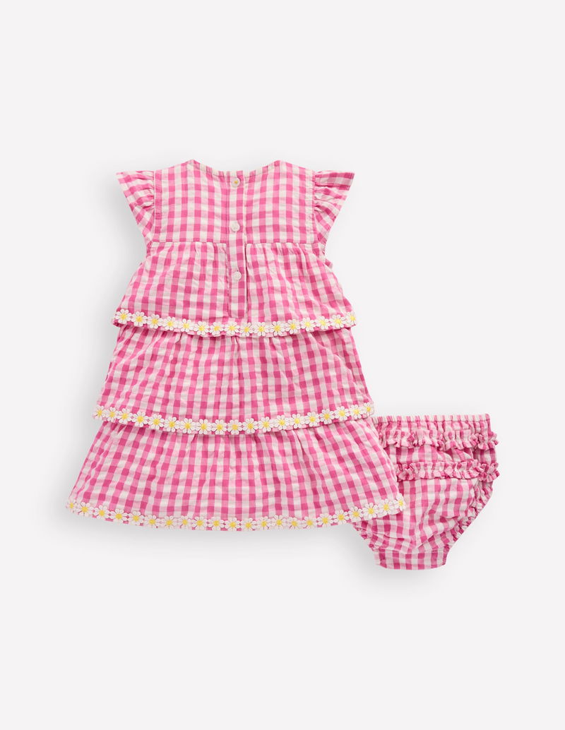 Tiered Woven Dress-Pink Gingham Daisies