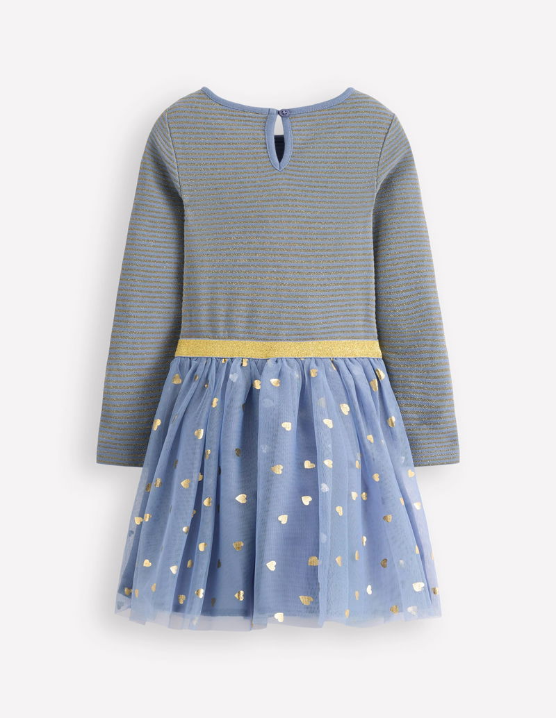 Twirly Tulle Mix Dress-Stormbolt Blue/ Gold Confetti