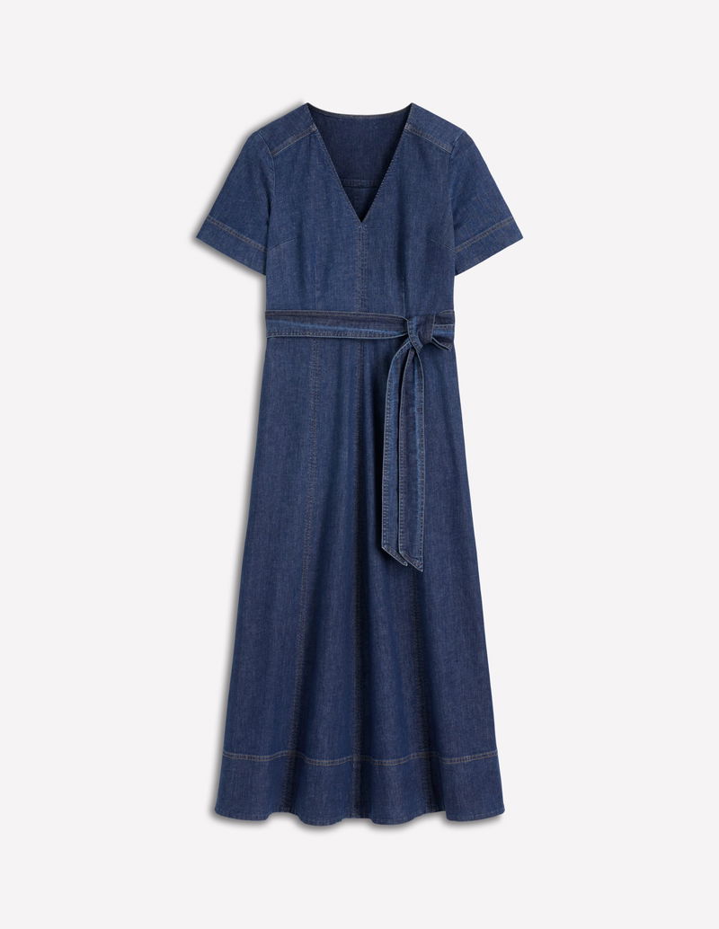 V-Neck Denim Dress-Mid Vintage