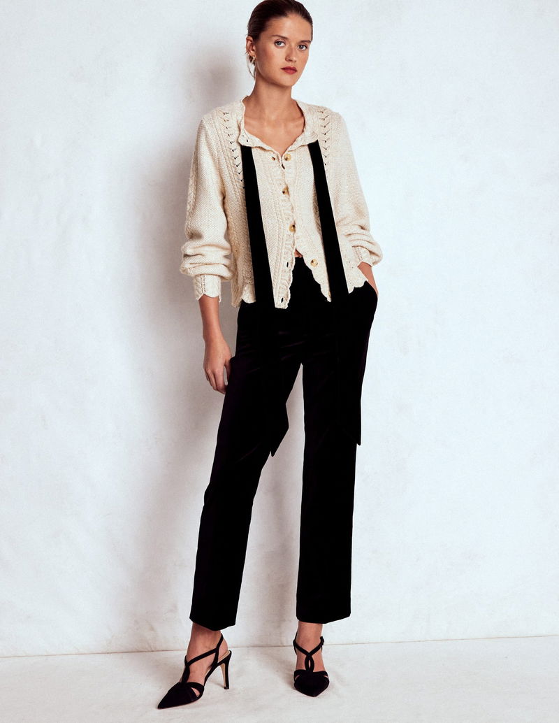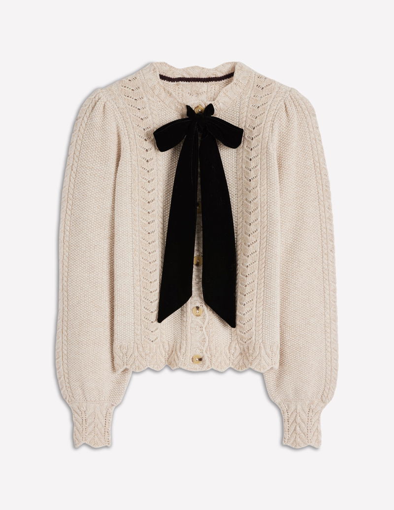 Velvet Bow Cable Cardigan-Gold Sparkle