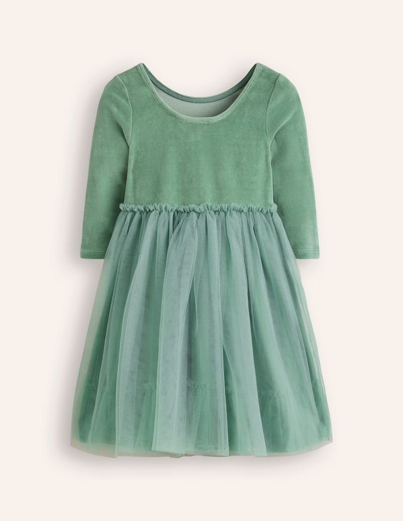 Velvet Tulle Appliqué Dress-Eucalyptus Robins
