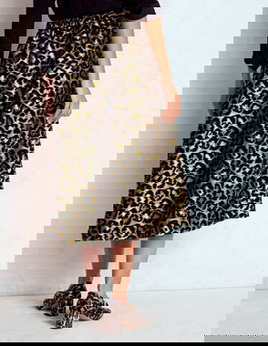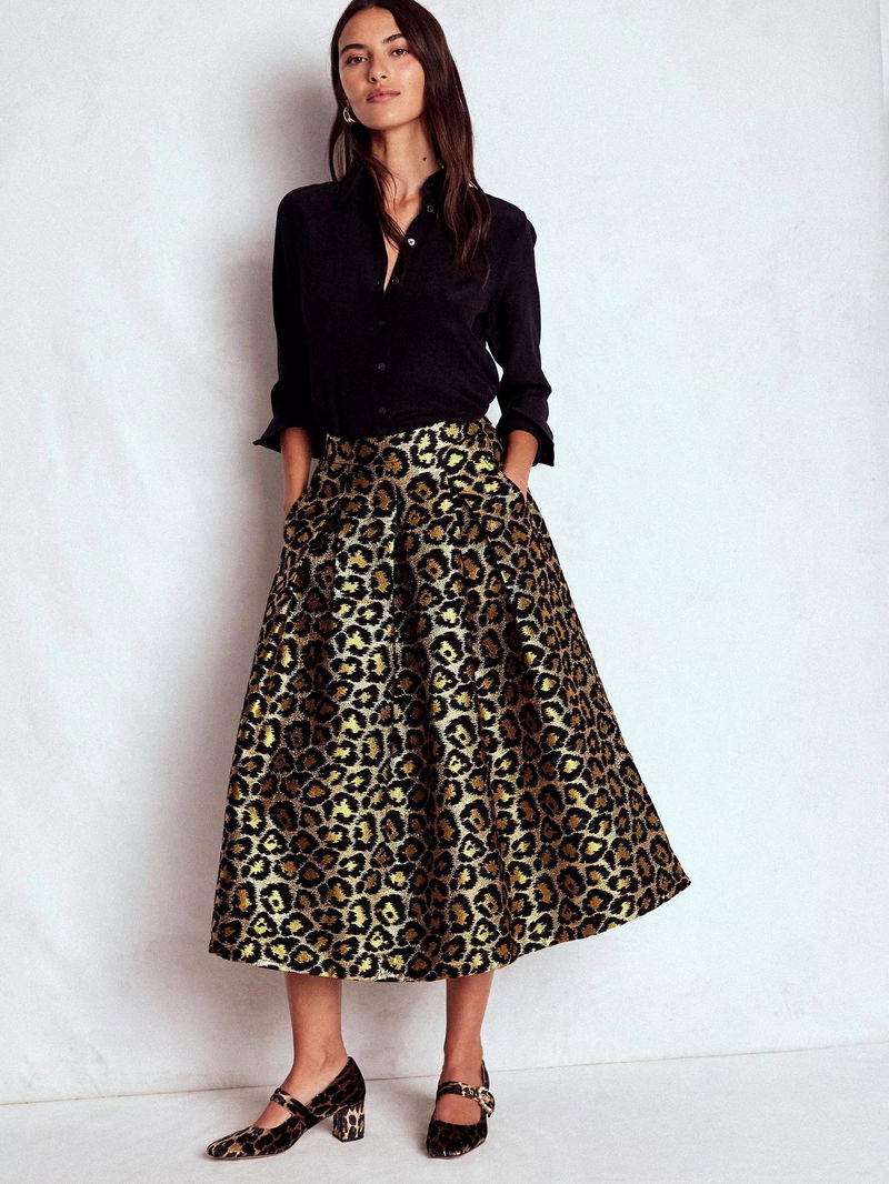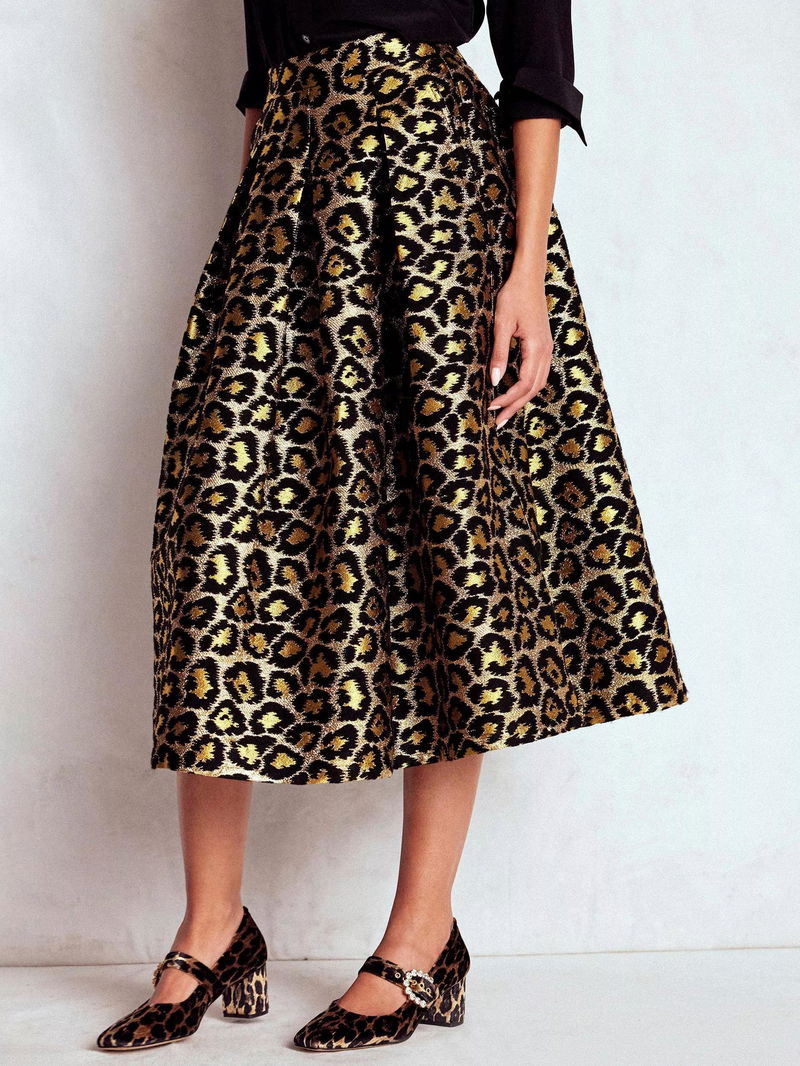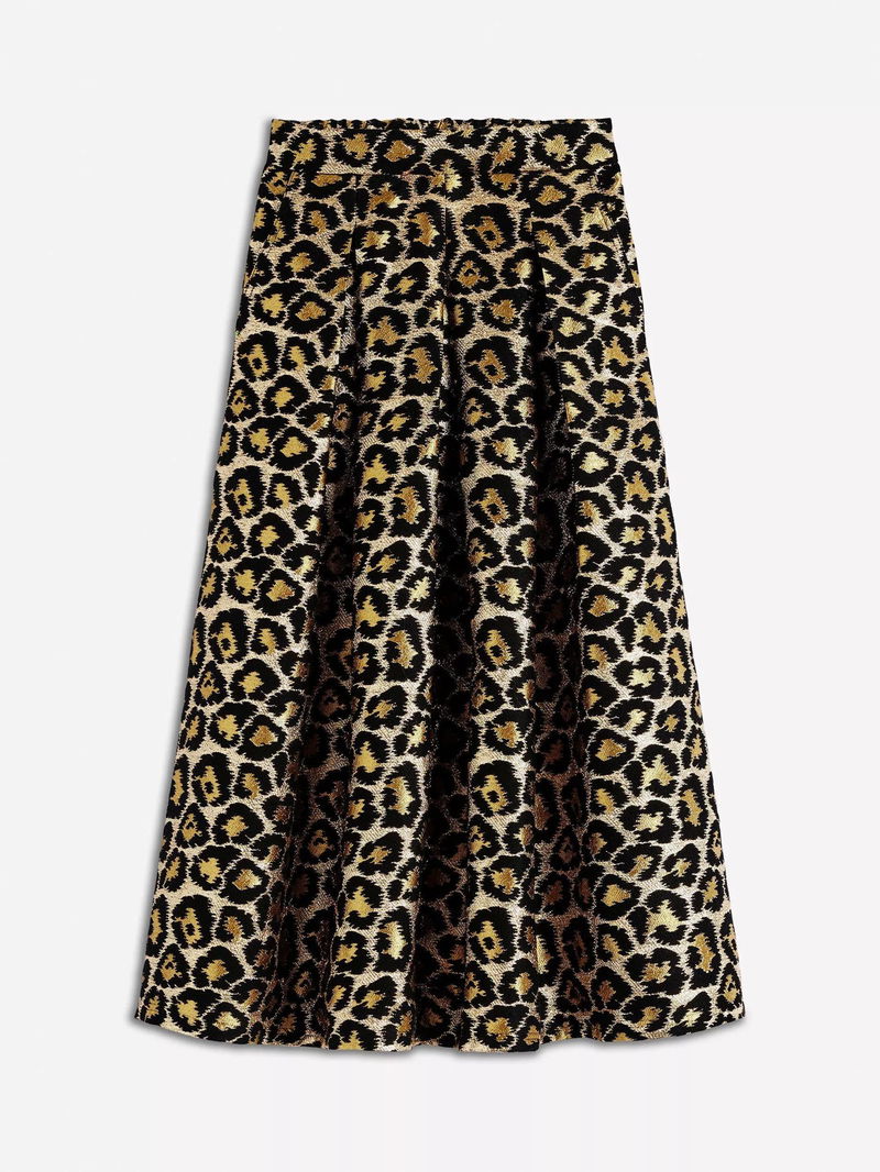 Verity Jacquard Leopard Print Midi Skirt, Brown/Multi