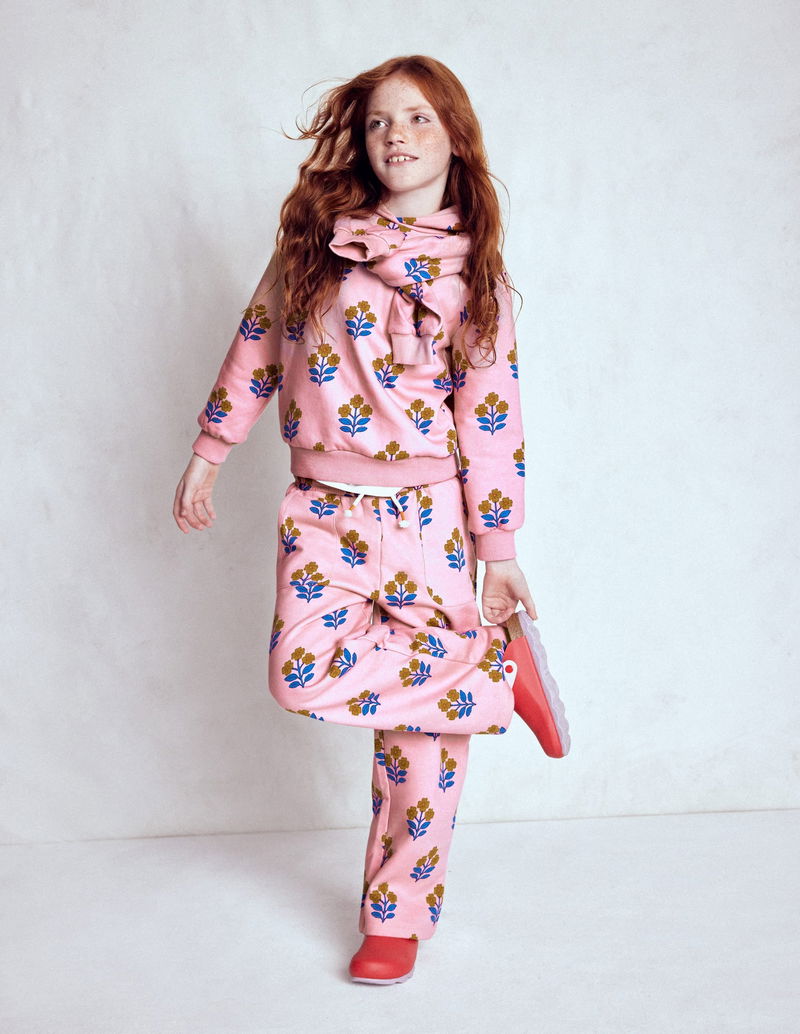 Wide Leg Printed Jogger-Formica Pink Woodblock Flower