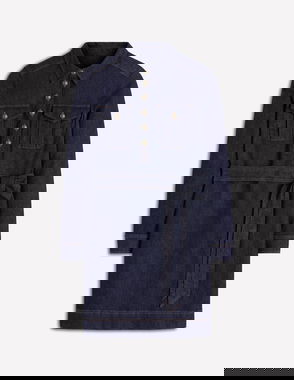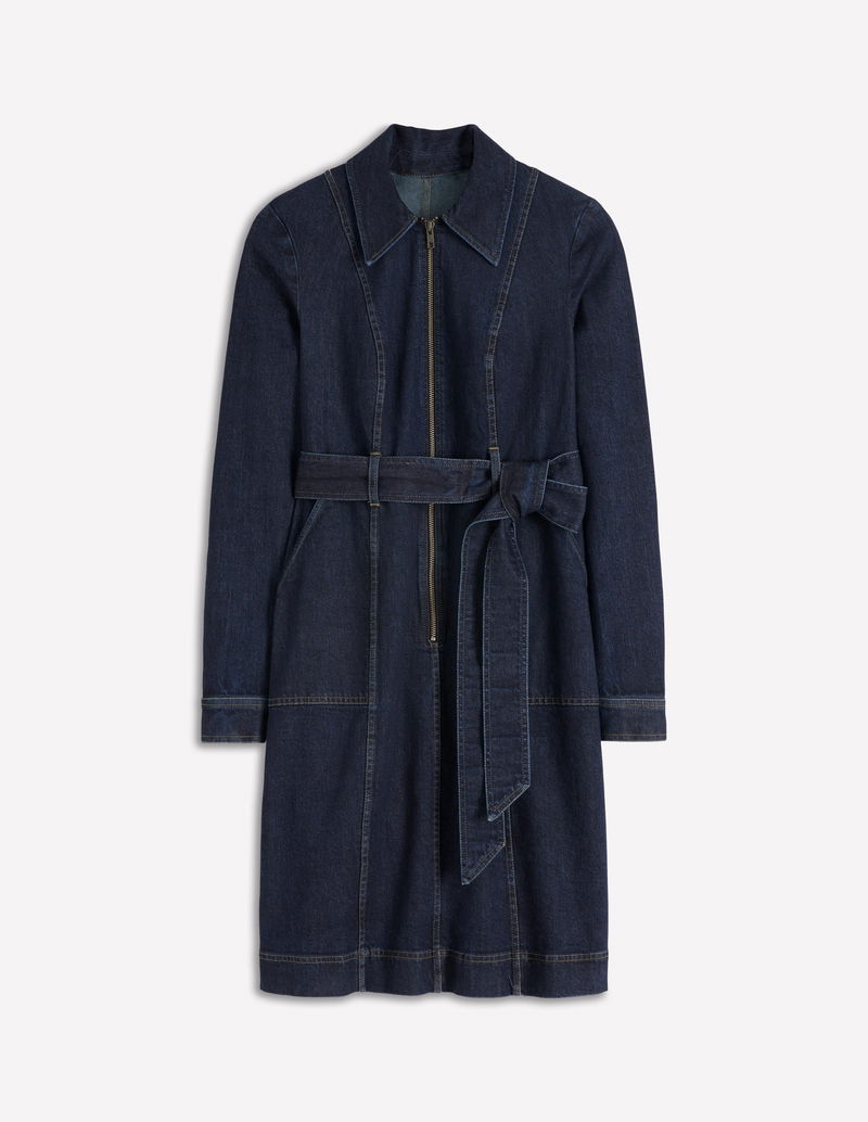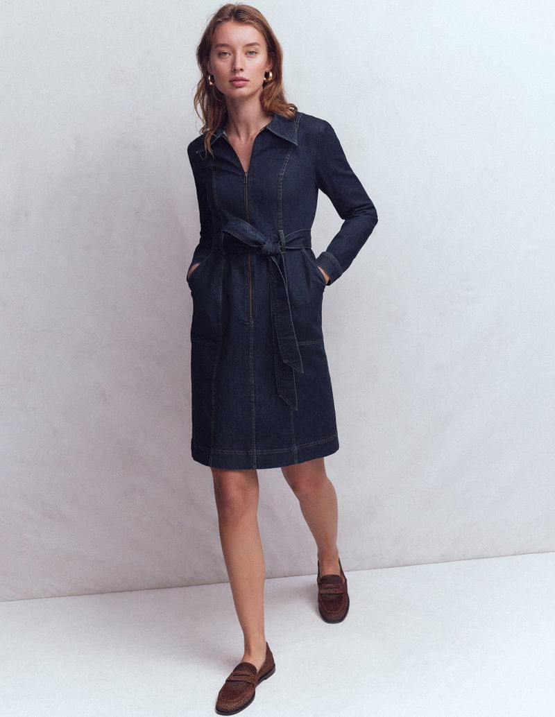 Zip Denim Short Dress-Indigo