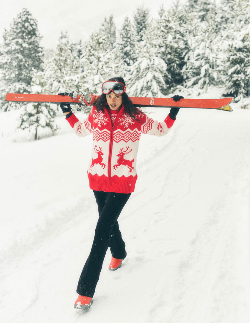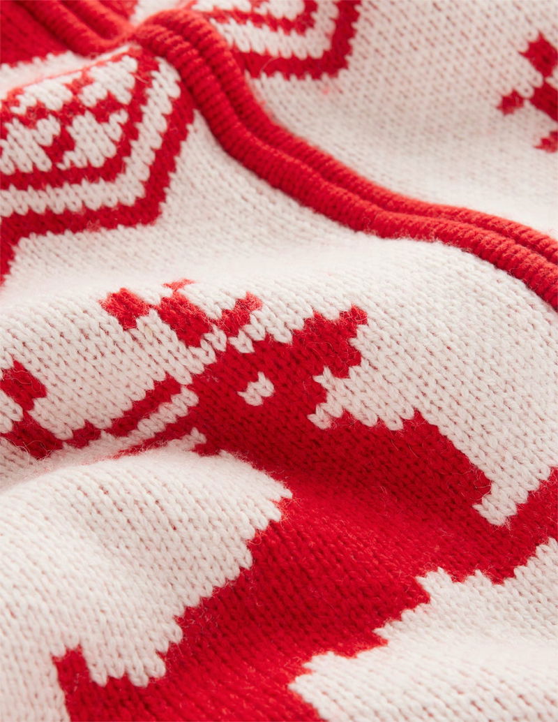 Zip Up Jacquard Cardigan-Poppy Red Reindeer