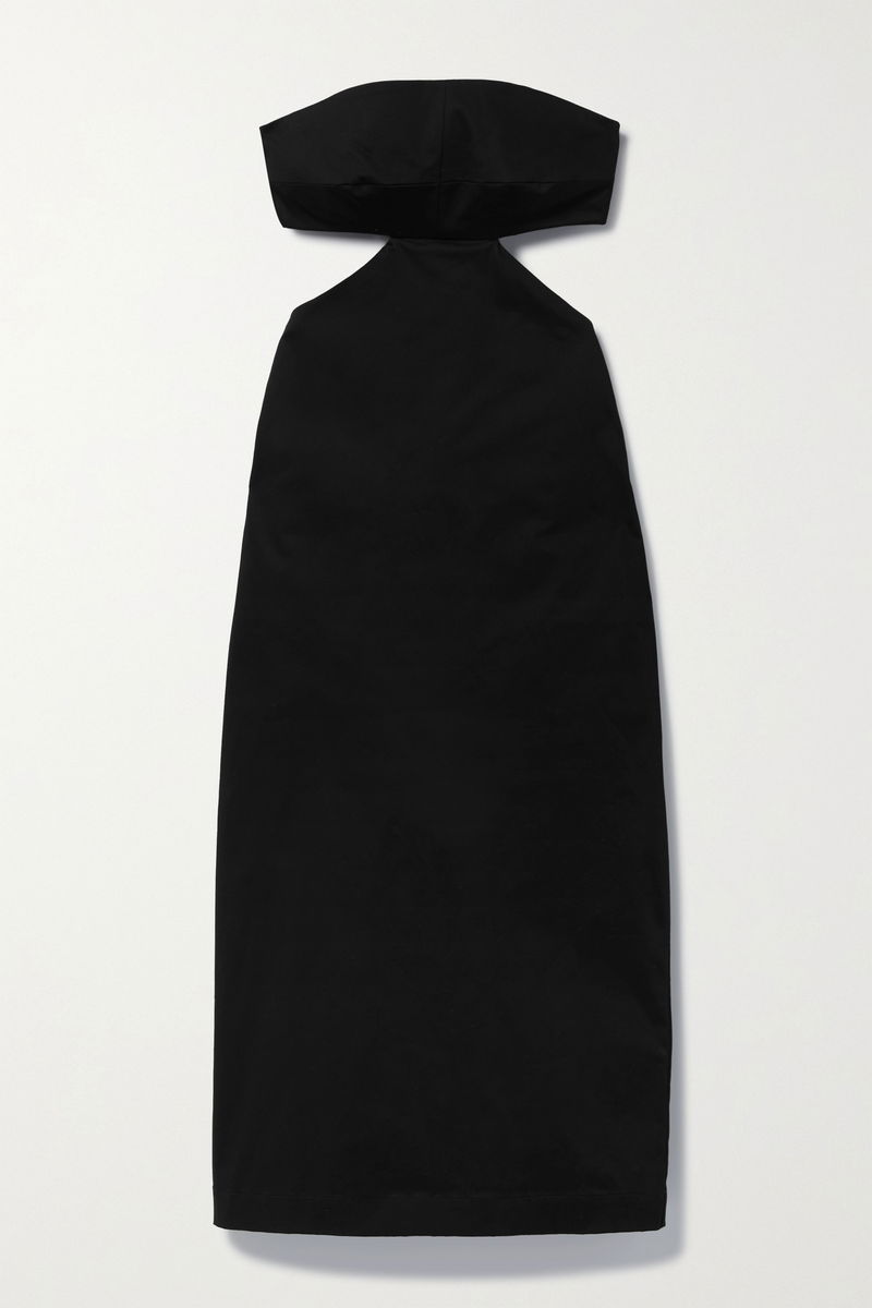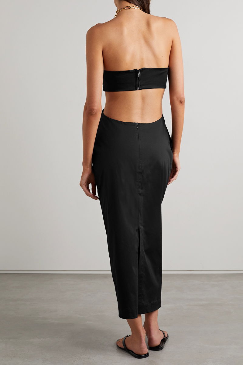 BONDI BORN's 'Monte Carlo' midi dress has bold cutouts at the sides that span across the back for a dramatic effect. Made from black cotton-blend cady, it's cut to sit close to the body. Accentuate the strapless neckline with chunky gold jewelry.
