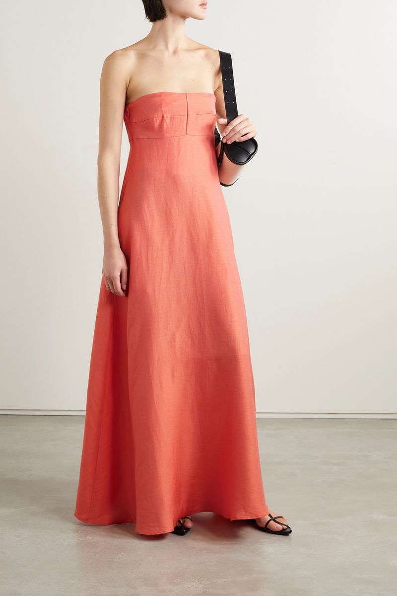 Timeless and elegant, BONDI BORN's 'Montenegro' maxi dress is minimally designed with a strapless neckline and floaty skirt. Designed in a vibrant 'Sunrise' hue, it's woven with breathable linen for a lightweight handle and fitted with internal boning to stay perfectly in place. Wear yours with simple accessories.