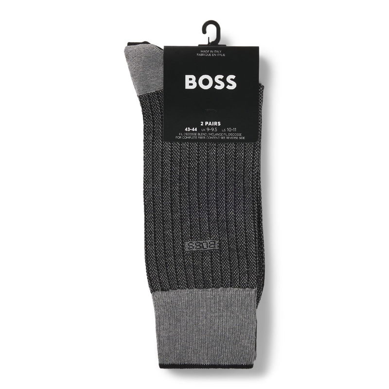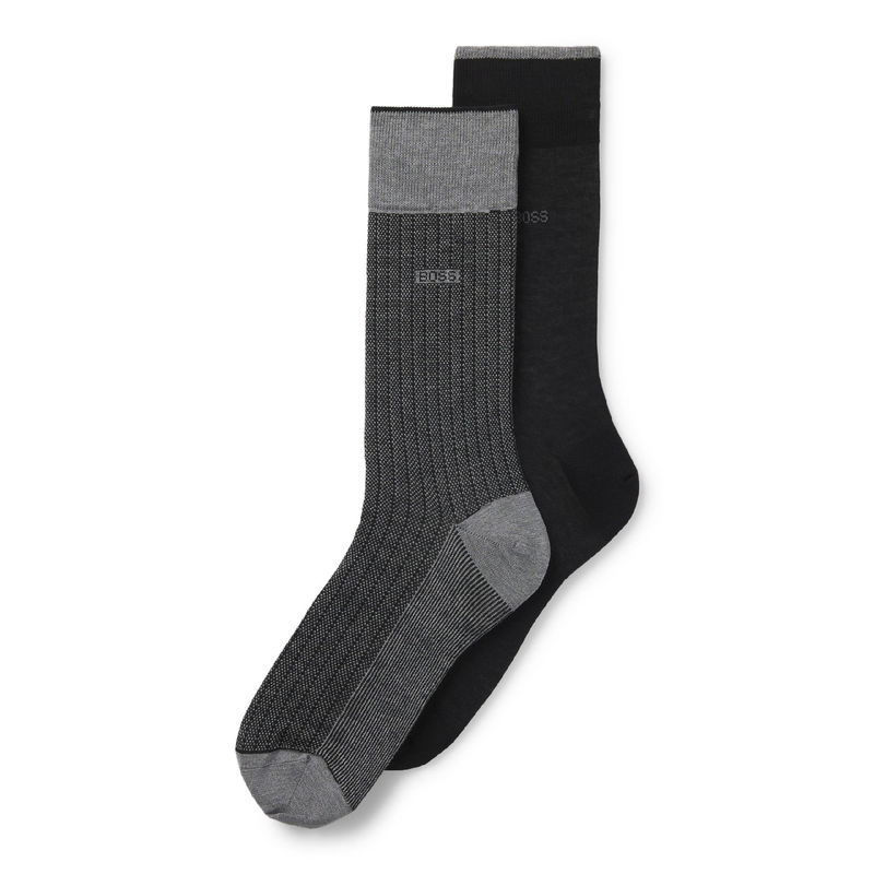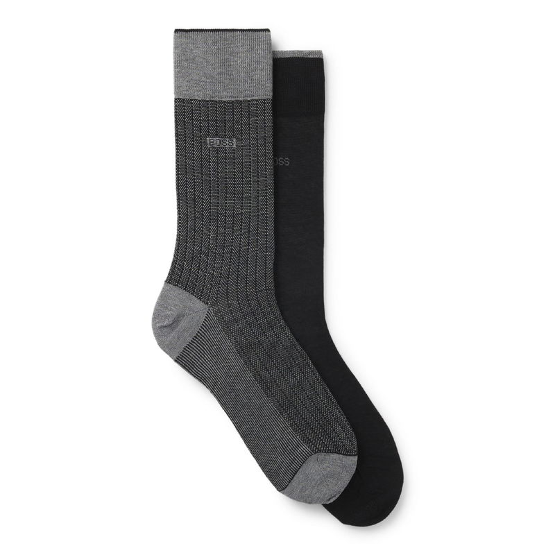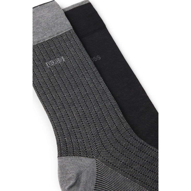 Mens BOSS Two pack of Mercerised Cotton Socks in a Regular Length in black Two pairs of extra-soft socks cut to a regular length in mercerised cotton with logo details by BOSS.