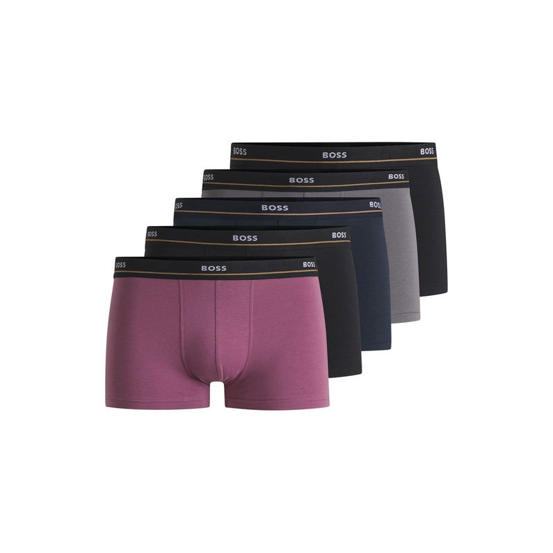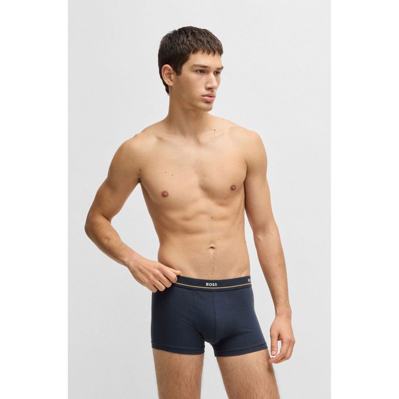 Mens BOSS Five-pack of logo-waistband trunks in stretch cotton Five pairs of easy-wear trunks in soft stretch cotton by BOSS Menswear. Each pair has a regular-rise waistband with repeat logos.