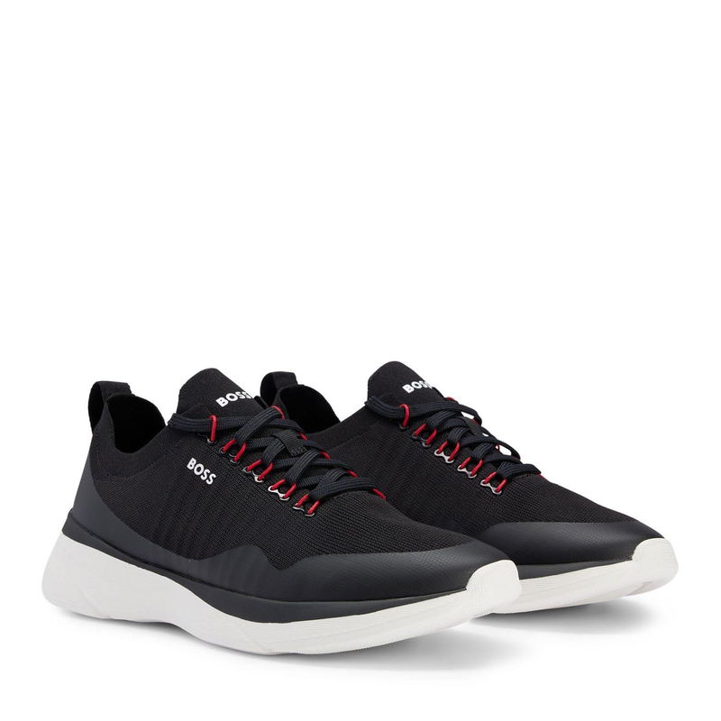 BOSS Green keep themselves relevant by providing youthful pieces that can be worn in and outside of your sporting and casual endeavours. They present these Dean Runner Trainers coming in a black colourway and boasting a knitted upper for a sock-like finish. Details: black colourway lightweight EVA outsole flat lace fasten knitted upper heel pull tab tonal stitching and branding to the sidewall completes.