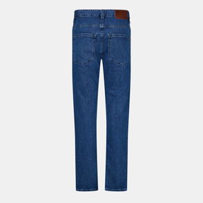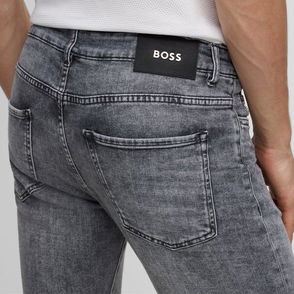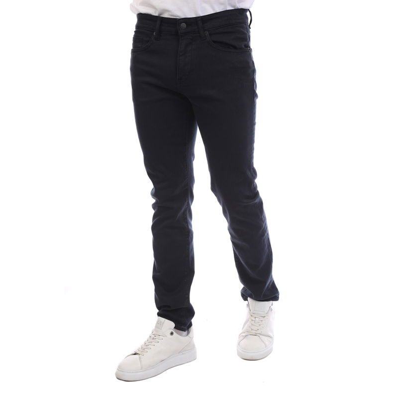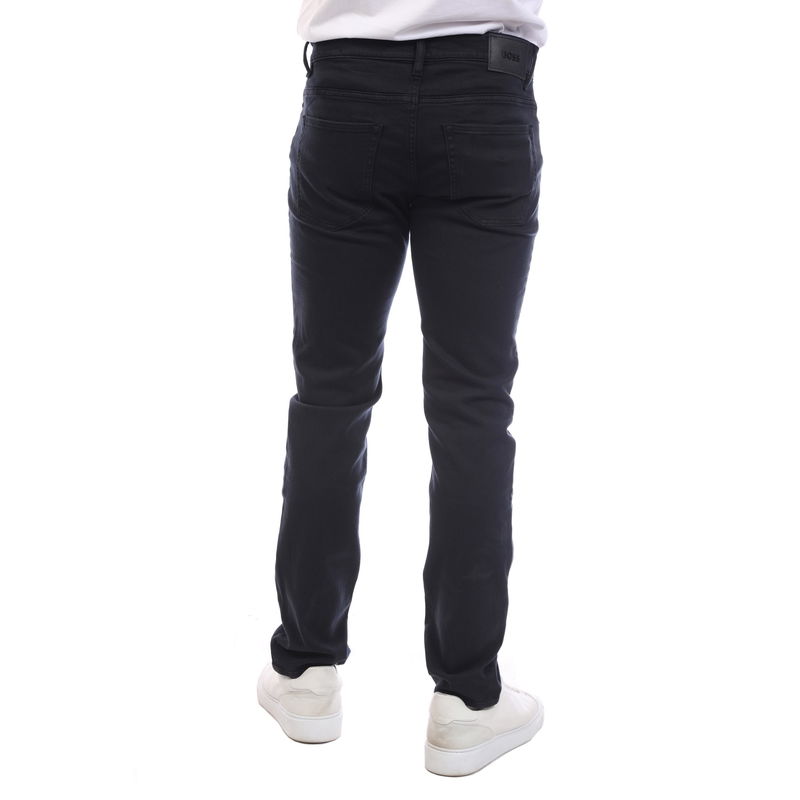 Mens BOSS Delaware Slim Fit Jeans in navy. 5-pocket construction. Zip fly and button fastening. Regular rise. Branded leather patch at rear waist. Slim fit.