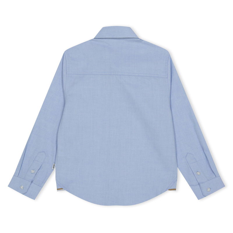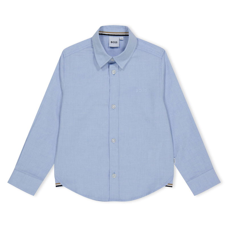 The BOSS Logo Shirt for boys delivers style. Made from Oxford cotton in a regular fit, it features discreet tonal lettering embroidery and a striped trim along the lower edge.