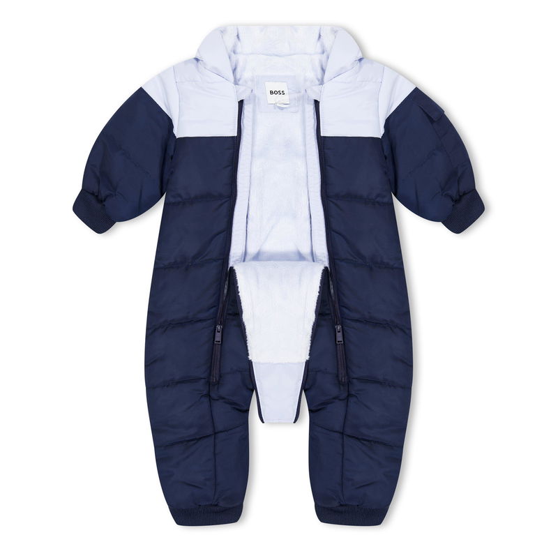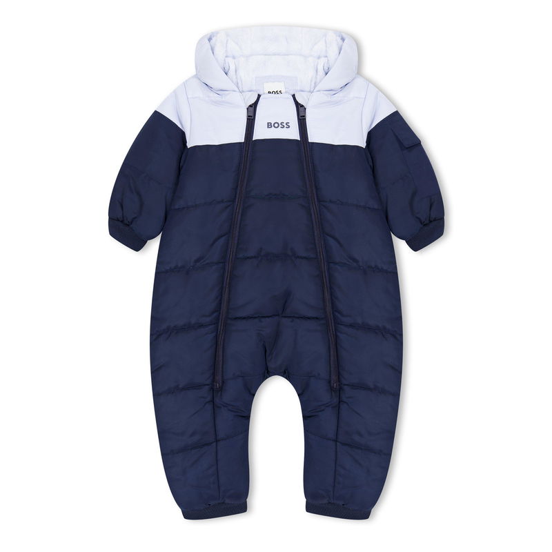The BOSS Logo Insulated Snowsuit delivers winter protection for little explorers. This baby outerwear piece features reliable insulation wrapped in BOSS design elements, with practical openings that make dressing squirming babies quick and hassle-free.