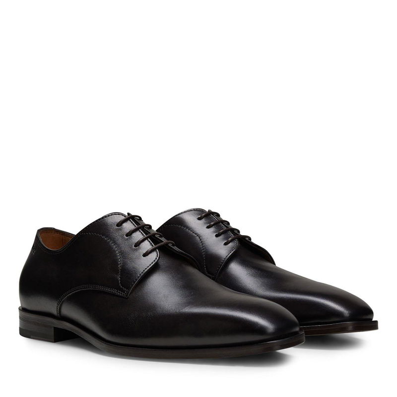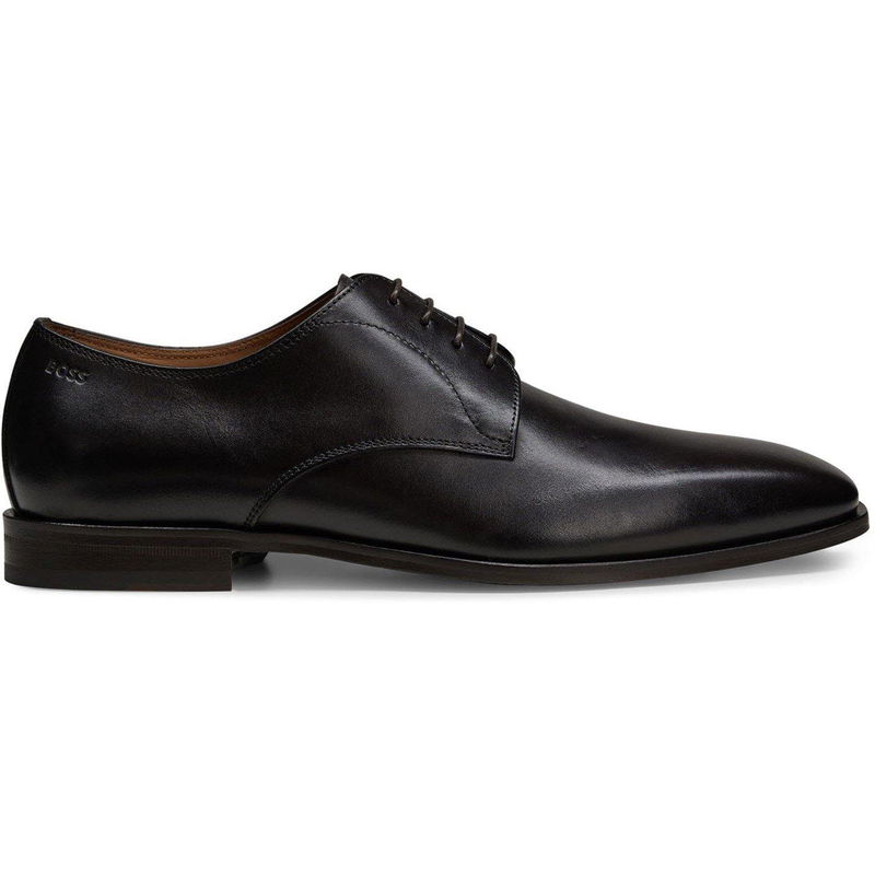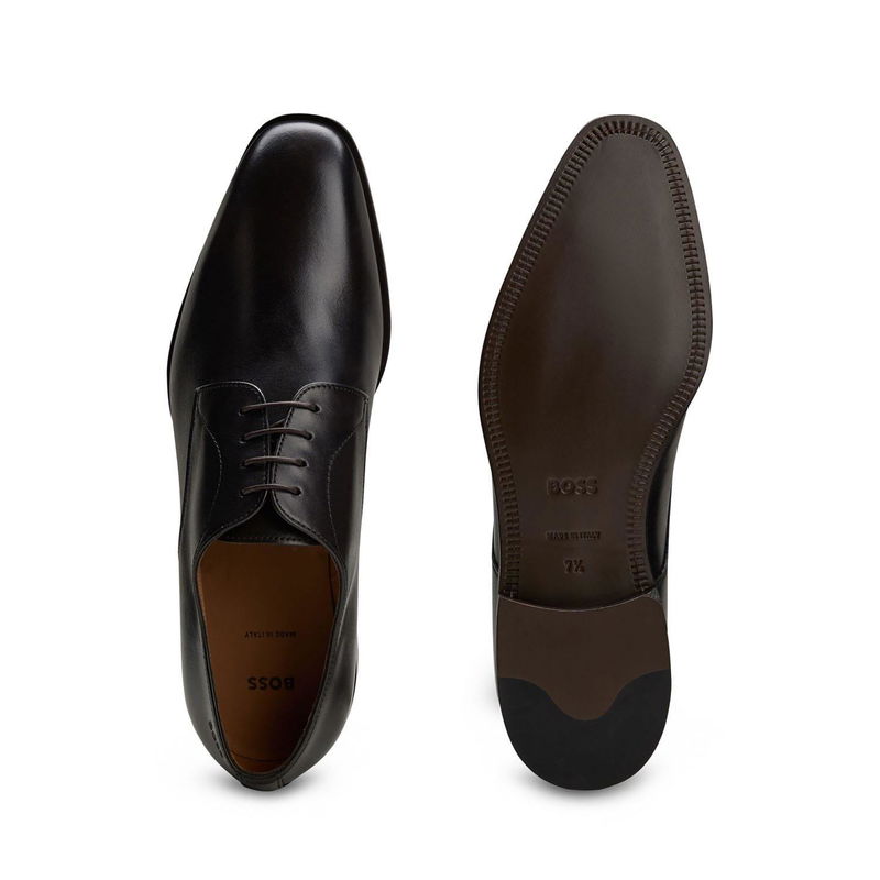 Mens BOSS Lisbon Derby Shoes in brown. Lace closure. Almond toe. Solid block colouring that provides an exceptional foundation to style these shoes into any ensemble.