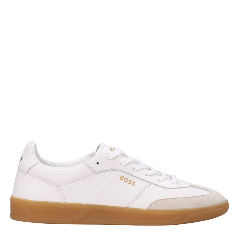 Contemporary minimalism defines the BOSS Brandon Tenn, where textures meet contrasting front panel detailing for a low-top profile. These trainers combine athletic heritage with sleek design elements for everyday style.