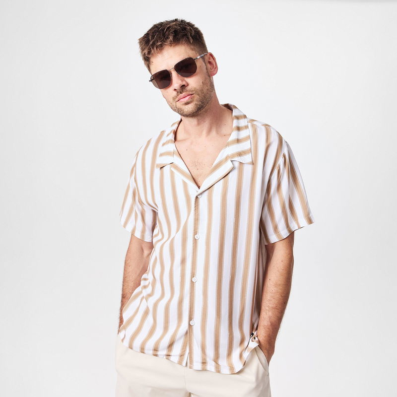 Men's BW Beach Shirt, Plain Short-Sleeve
