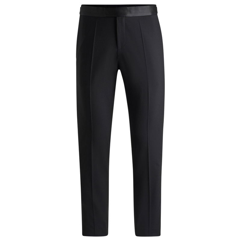 BOSS crafts the H-Genius-Tux trousers for groom attire. These tuxedo trousers feature a structured cut that complements special occasion attire, whether paired with a bow tie, cummerbund or necktie for sharp styling.