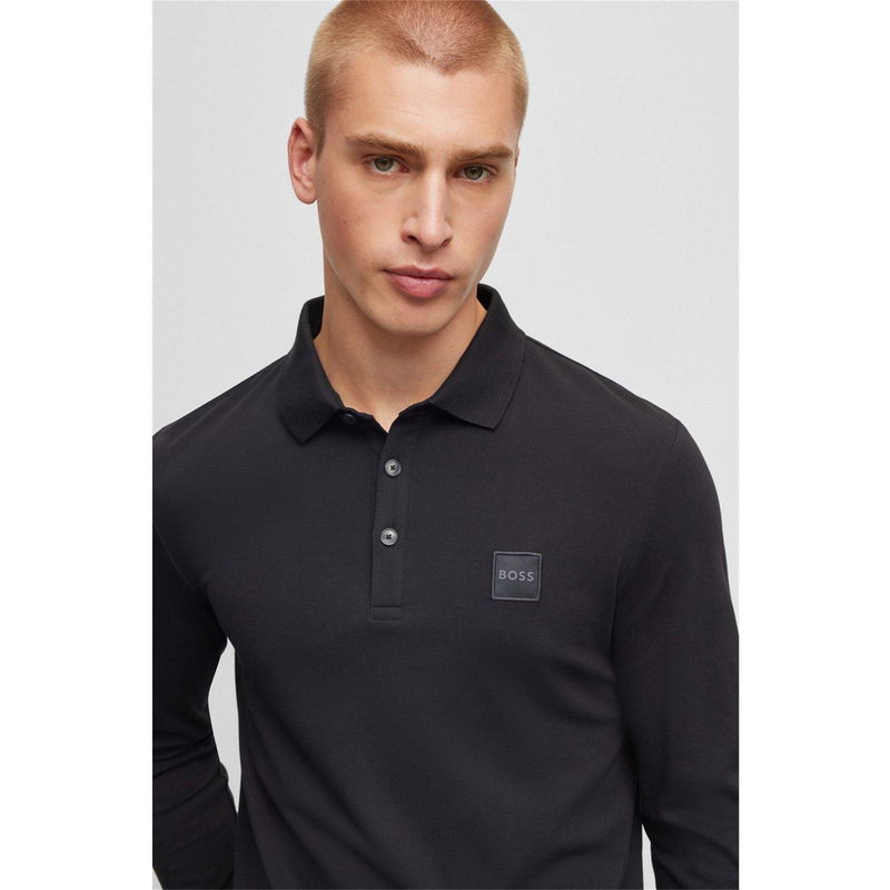 The BOSS Passerby Polo Shirt balances classic design with modern comfort in a stylish slim fit. Cut from stretch fabric for easy movement, this long-sleeve poloshirt design delivers practical style with everyday wearability, finished with designer branding details. This adaptable shirt offers a smart-casual appeal, making it suitable for various occasions where a T-shirt style with a smarter look is appropriate.