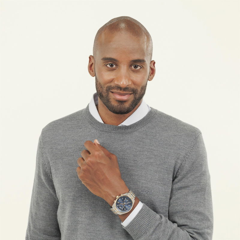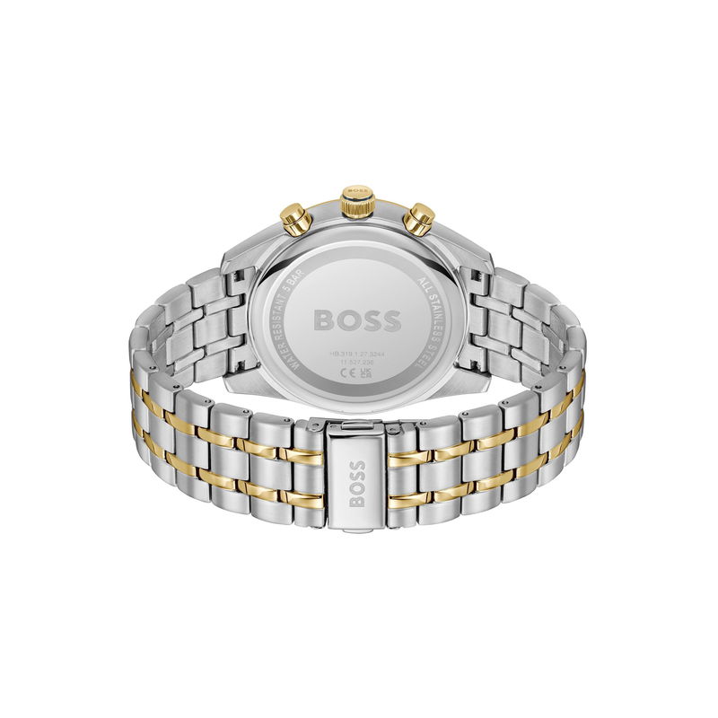 BOSS advances timekeeping with the Skytraveller chronograph. The substantial 44 mm case balances bold presence with fine detailing, while the dial creates striking contrast against metallic accents.