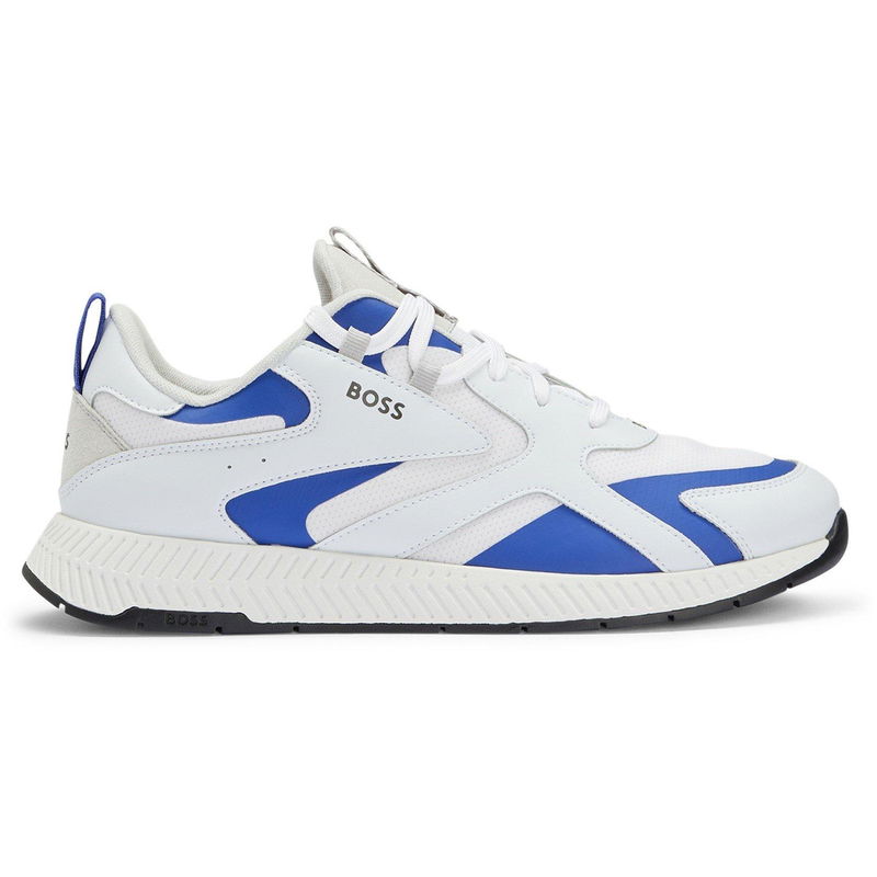 The BOSS Titanium Runners Low-Top Trainers deliver sleek, contemporary style for everyday wear. These sneaker trainers feature a streamlined shape with a low-top design, providing both comfort and appeal for various casual outfits.