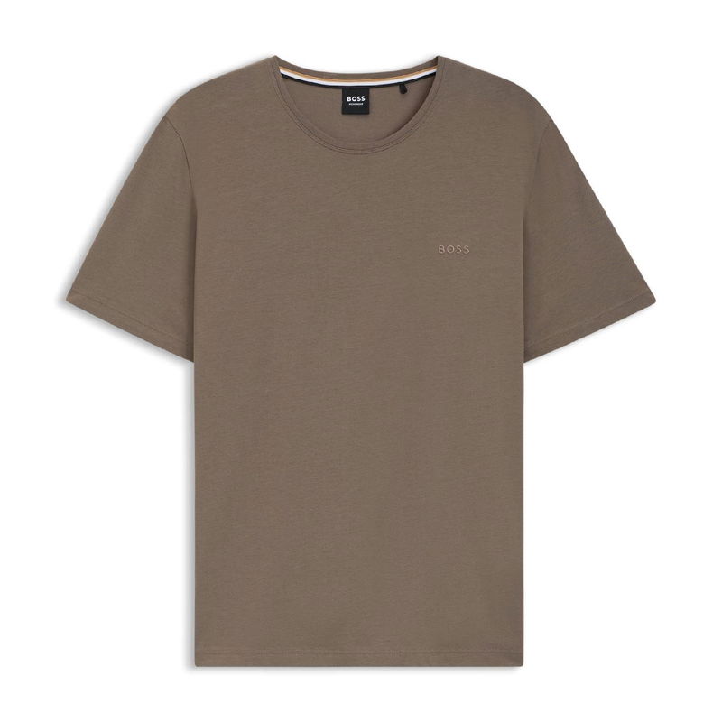 Mens BOSS Mix & Match Embroidered Logo T-Shirt in Stretch Cotton in medium brown. Crafted in soft stretch-cotton jersey this regular-fit BOSS Menswear T-shirt is ideal for downtime comfort. Embroidered with a BOSS logo.
